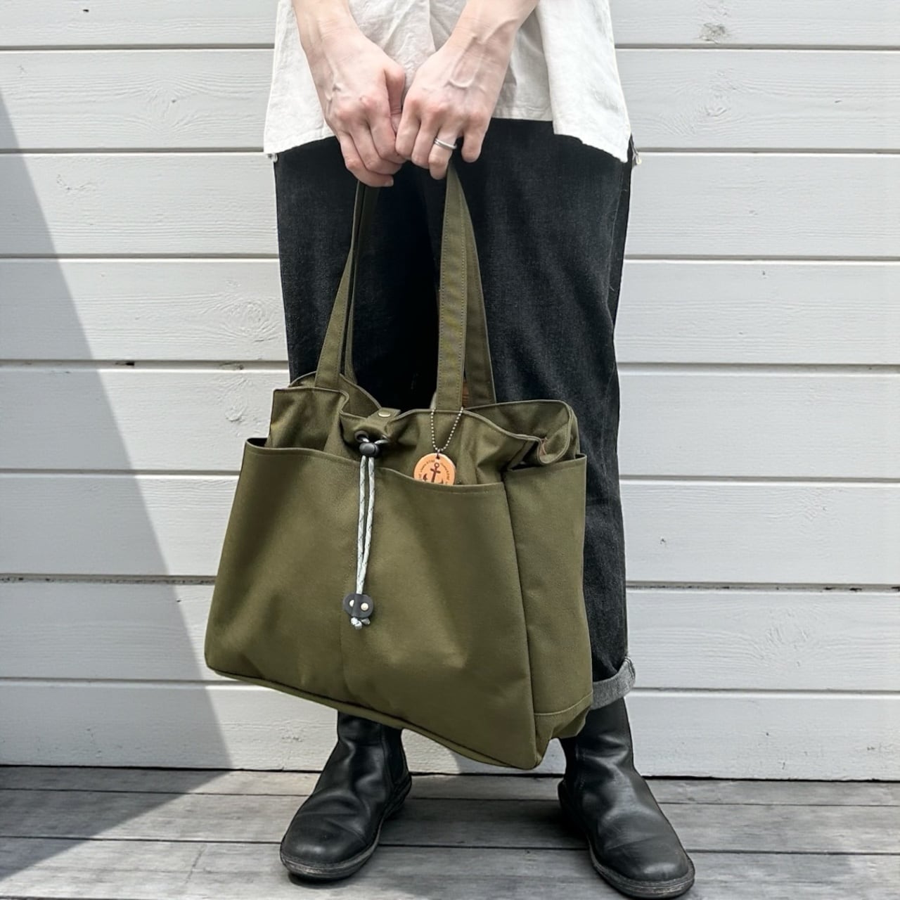 わがままトート:カーキ(コーデュラナイロン 撥水加工ナイロン素材トートバッグ)<受注製作>