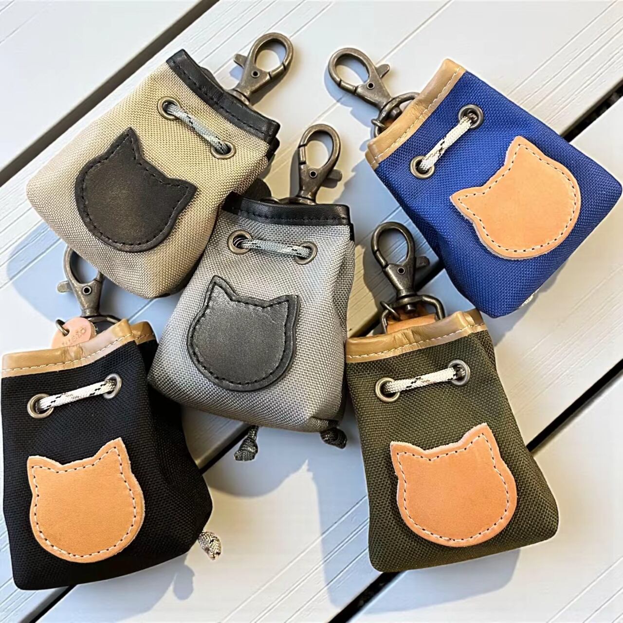 nico petit ミニ巾着<ネコ>コーデュラナイロン×栃木レザー(色の組み合わせは自由)