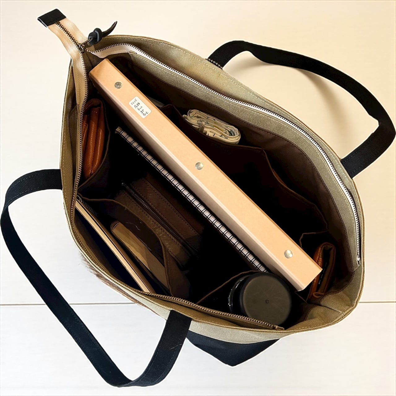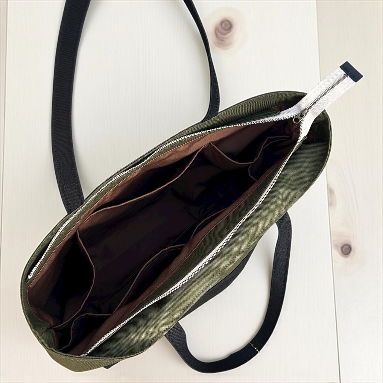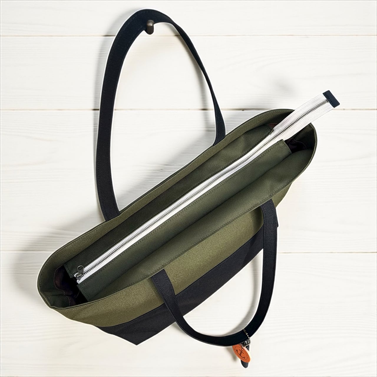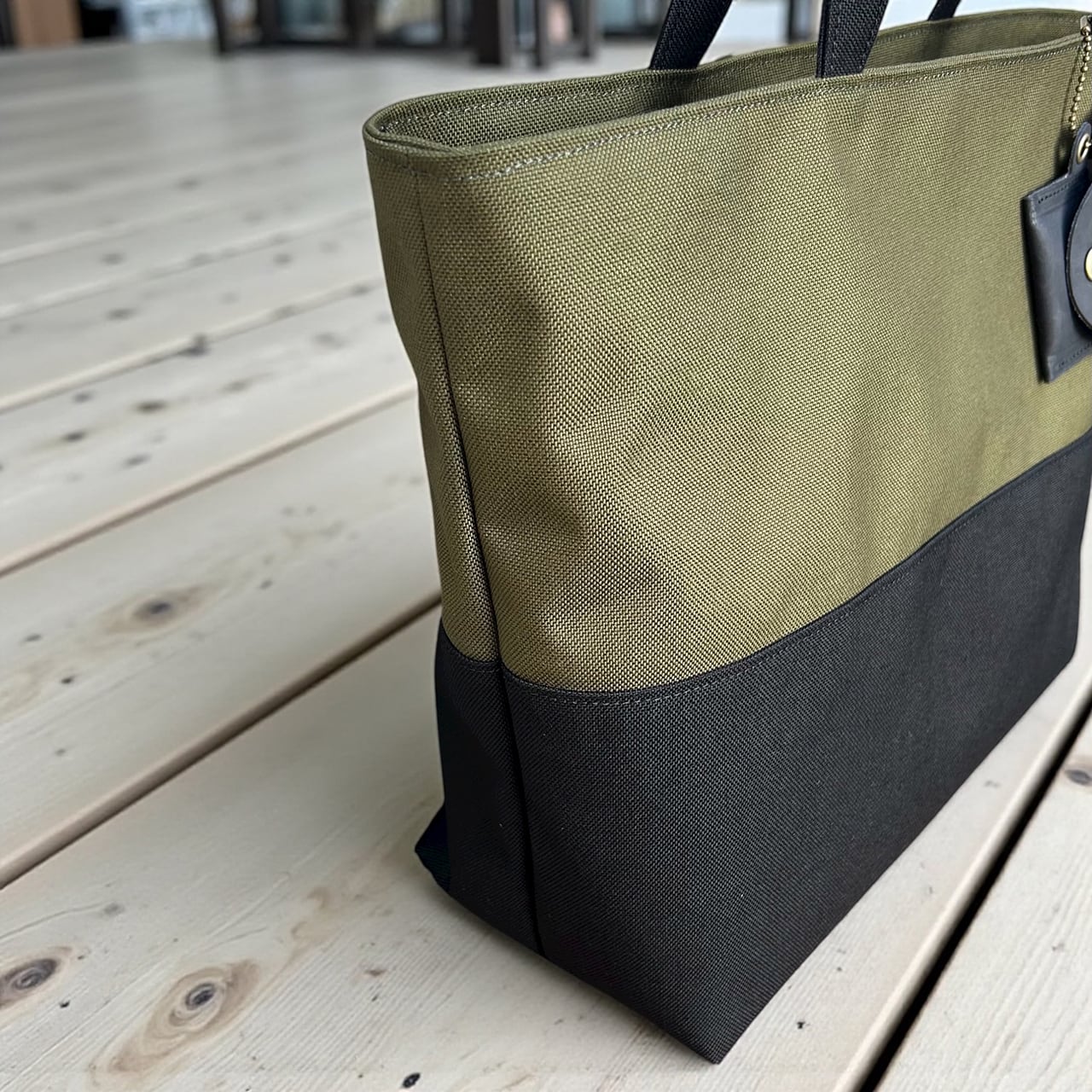 halb:カーキ×ブラック(コーデュラナイロン 撥水加工ナイロン素材トートバッグ)<受注製作>