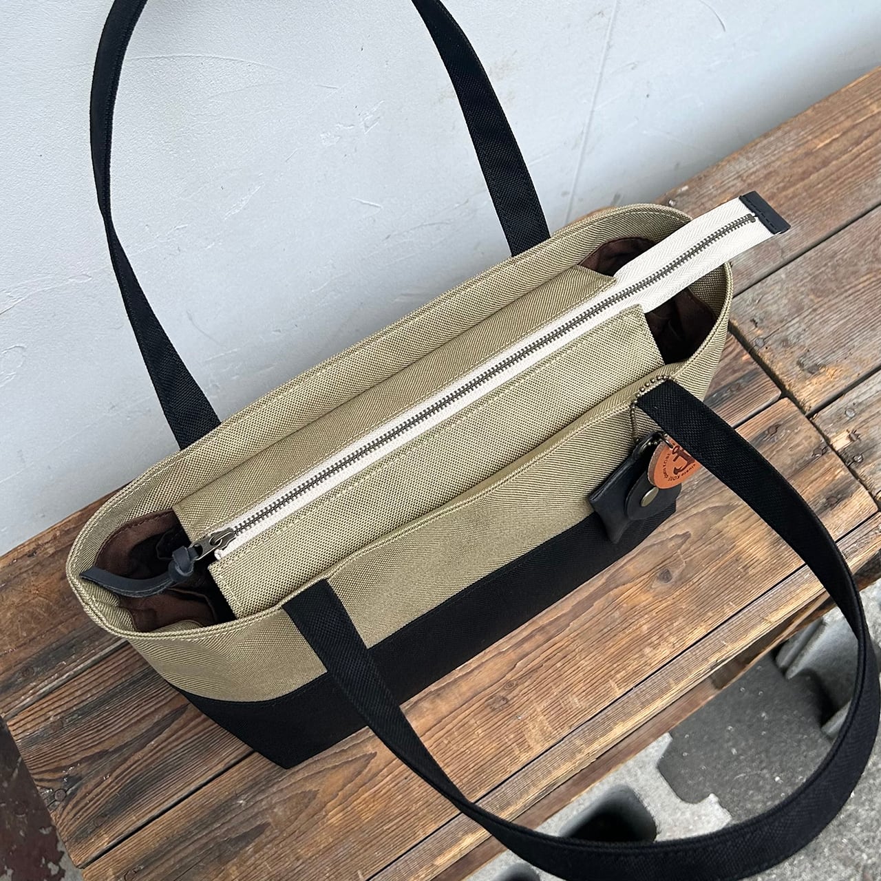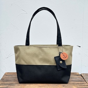 halb mini ベージュ×ブラック(コーデュラナイロン 撥水加工ナイロン素材トートバッグ)<受注製作>