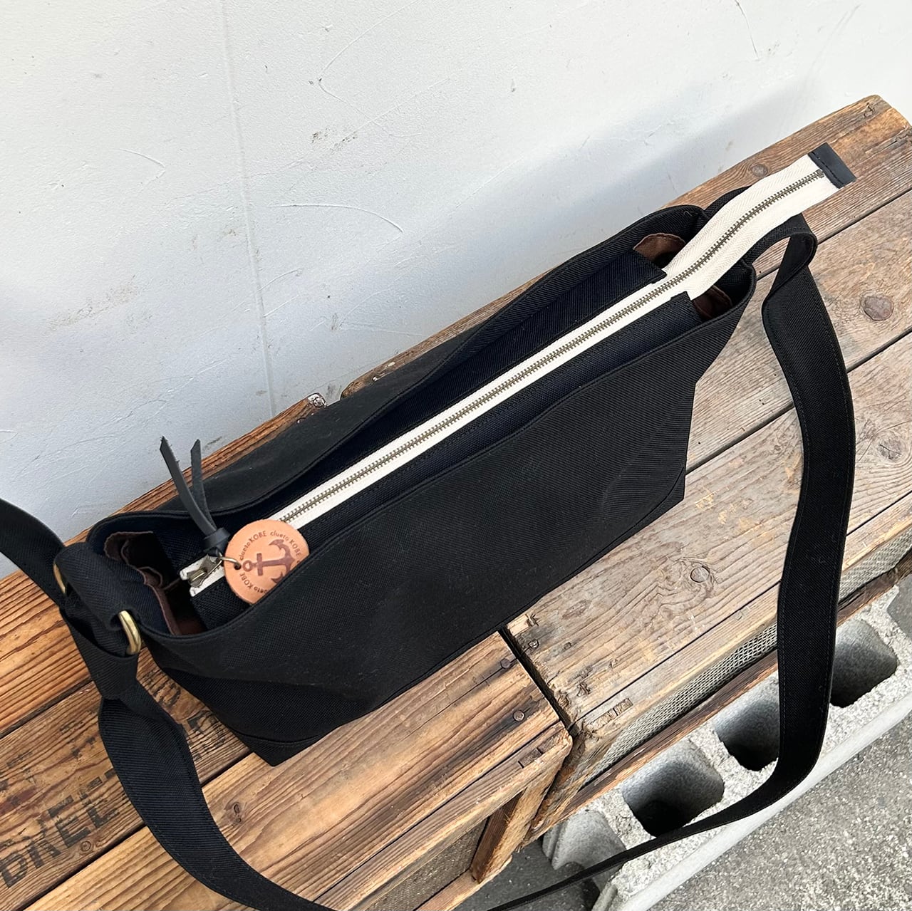 DRIFTER-S:ブラック(コーデュラナイロン 撥水加工ナイロン素材ショルダーバッグ)<受注製作>