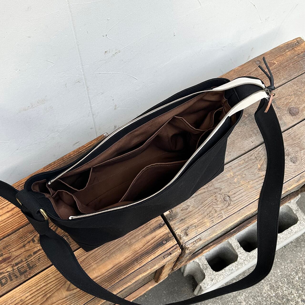 cluetoで15年以上人気のショルダーバッグの型紙をベースに作ったシンプルなショルダーバッグ。