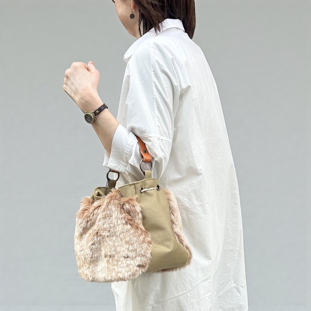 即納商品 BALON mini:ベージュ×バンビB(CORDURA 撥水加工ナイロン素材×フェイクファーバッグ)