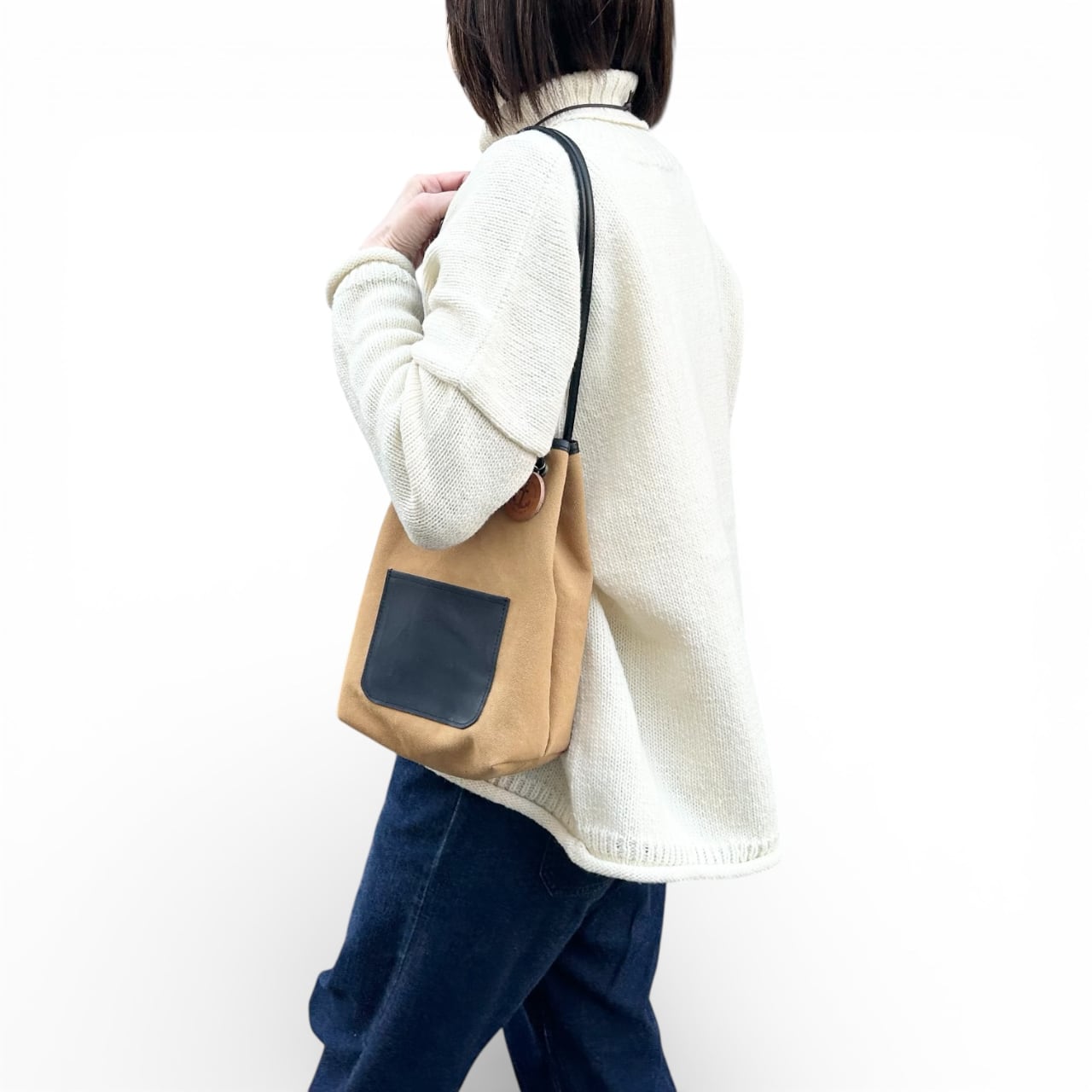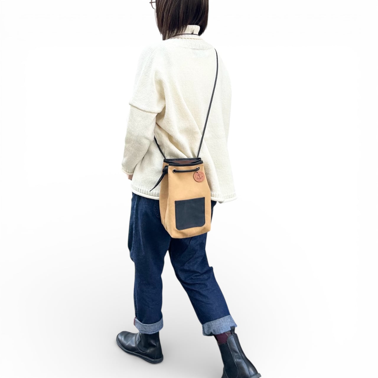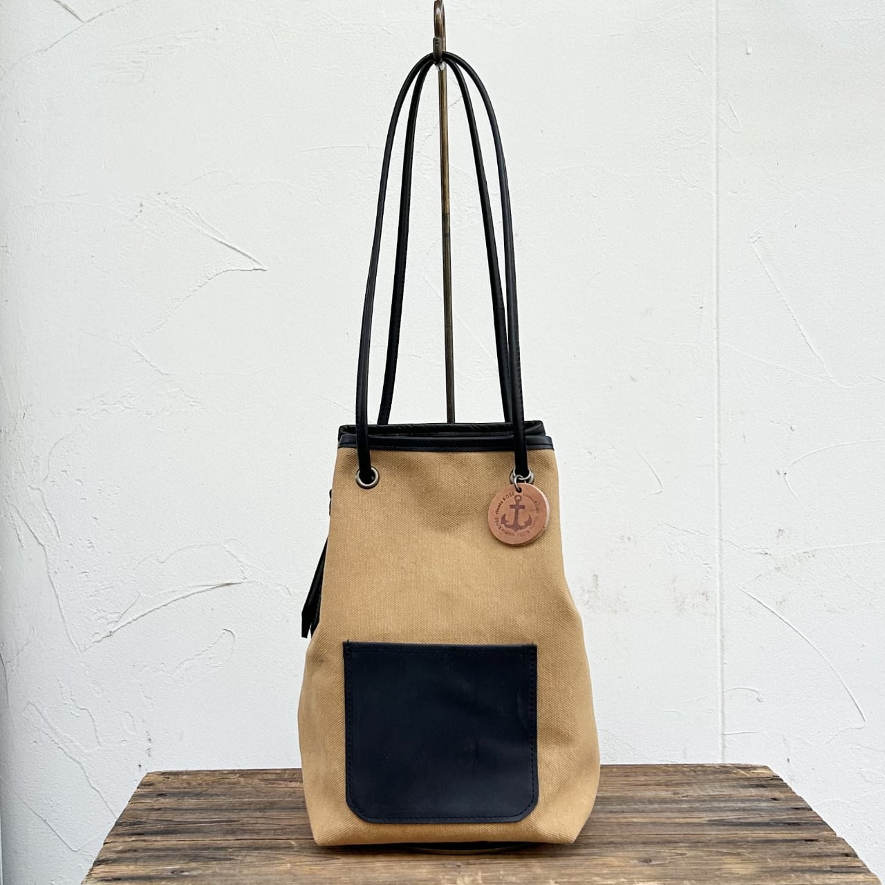 nico:タン(タンニン染め帆布×イタリアンレザー巾着バッグ)受注製作
