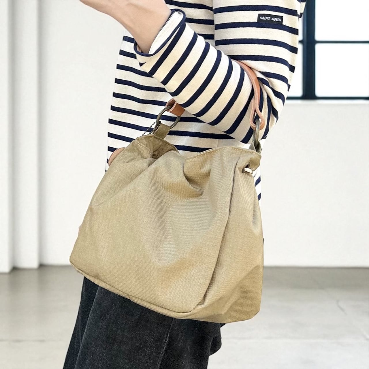 毎日使いたくなる、軽やかで上質な巾着バッグです。