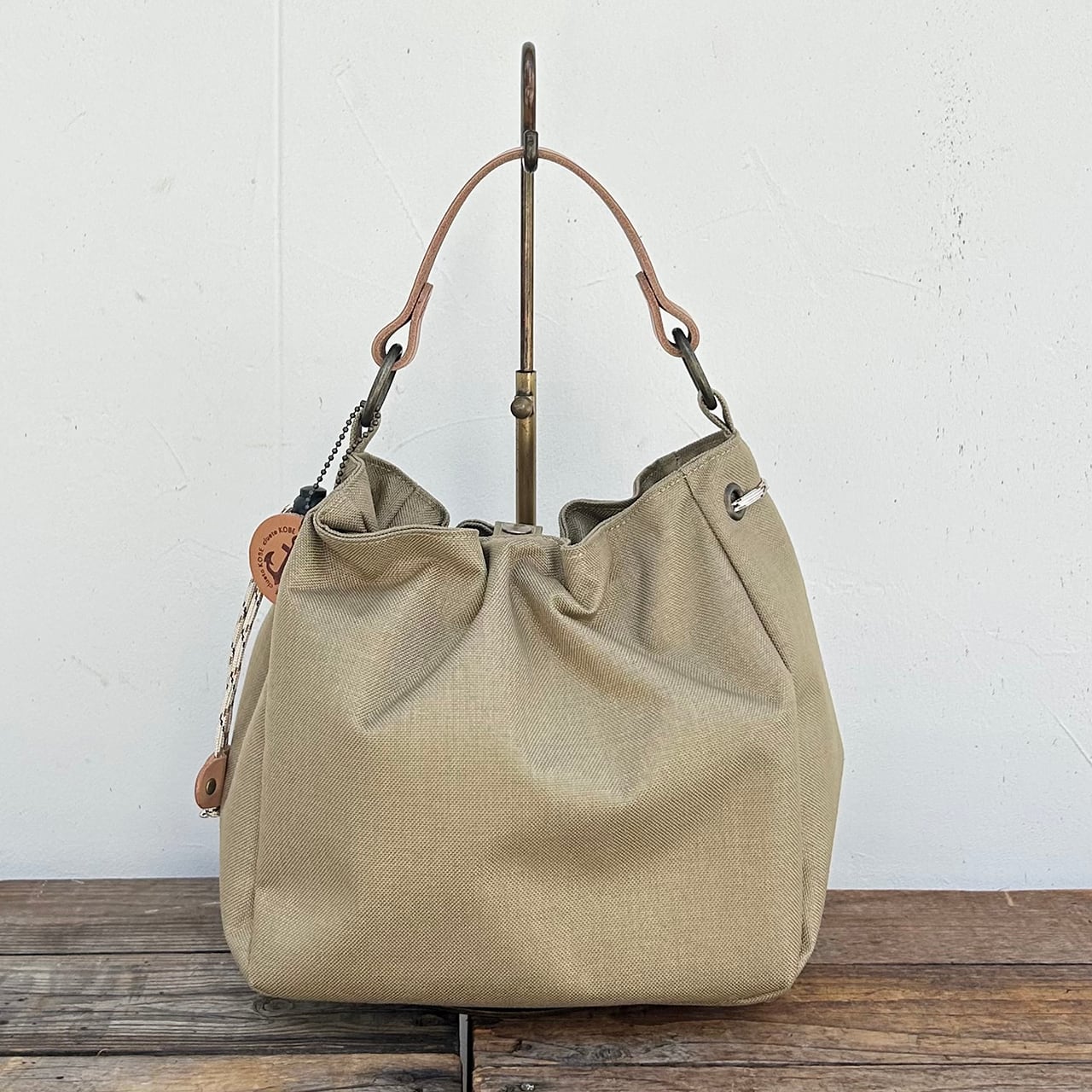 持ち手には栃木レザーをあしらい、使うほどに手になじむ上質な仕上がりに。