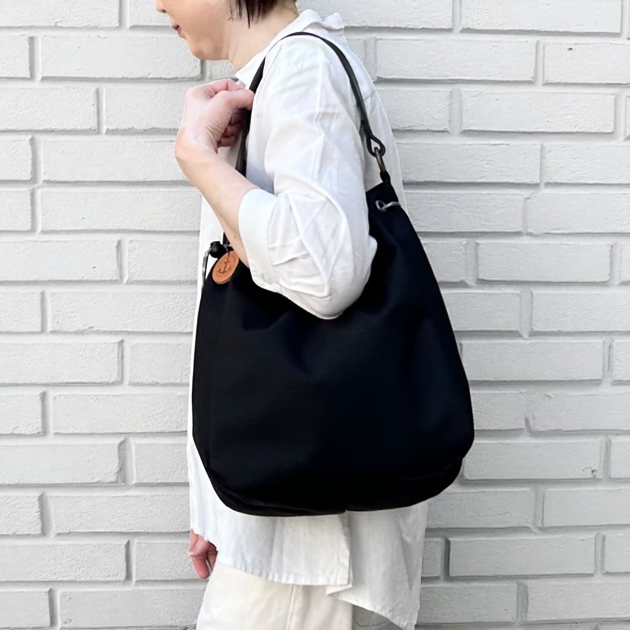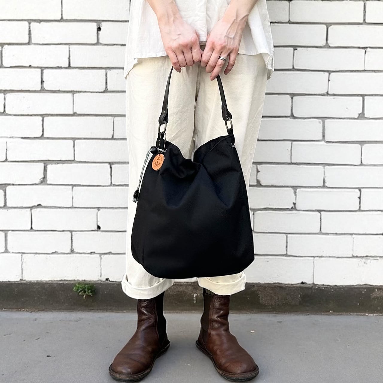 <即納商品> BALON:ブラック×ブラック(CORDURA 撥水加工ナイロン素材セミショルダーバッグ)<受注製作>