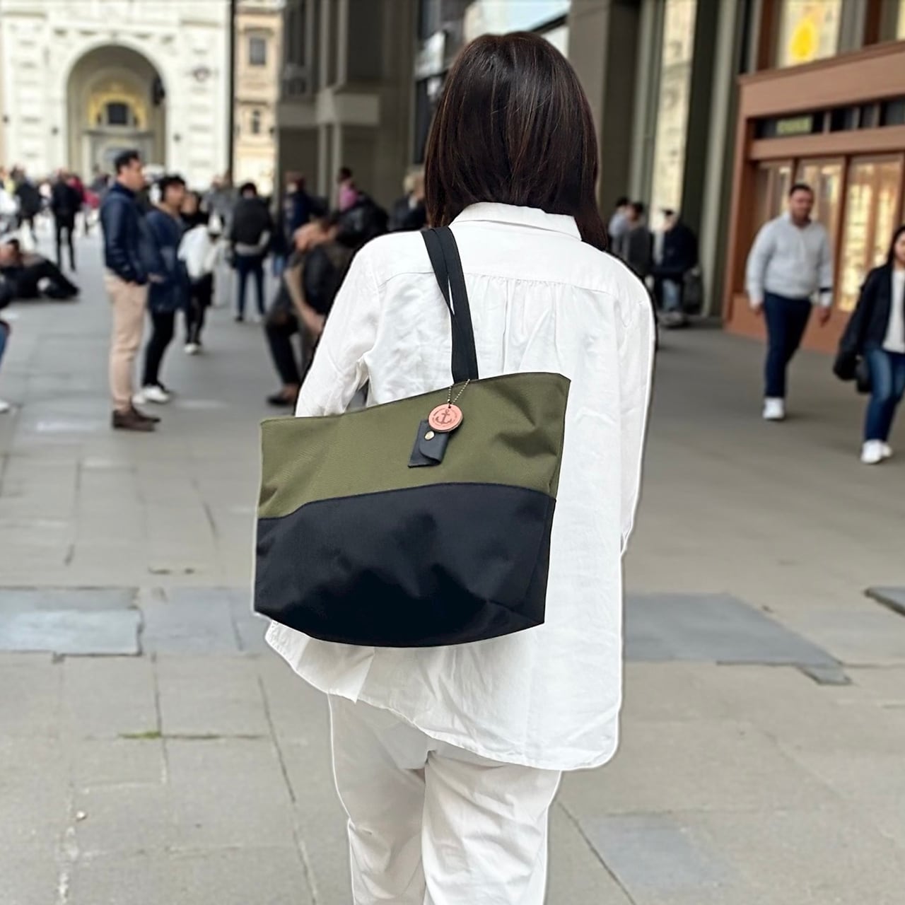 <即納商品> halb:カーキ×ブラック(コーデュラナイロン 撥水加工ナイロン素材トートバッグ)