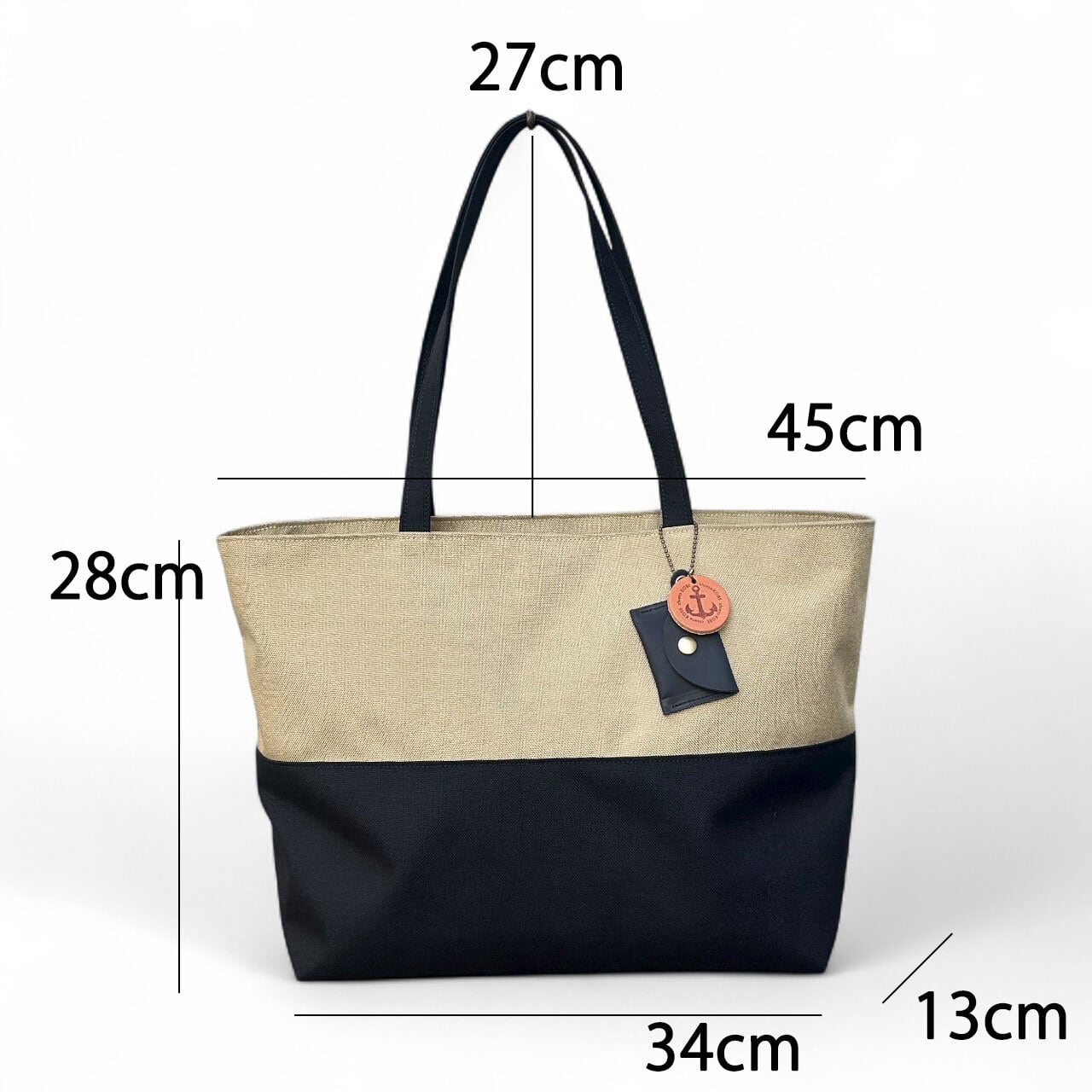 半分こをテーマに2色の生地を組み合わせてデザインしたシンプルなトートバッグ。