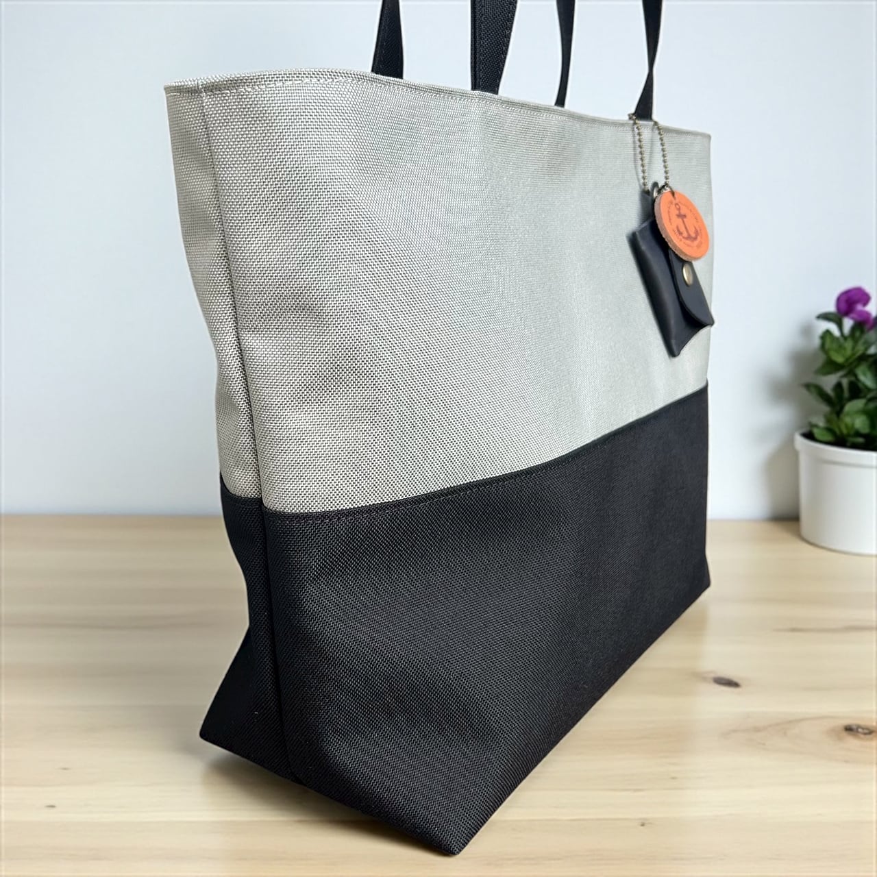 <即納商品> halb:グレー×ブラック(コーデュラナイロン 撥水加工ナイロン素材トートバッグ)