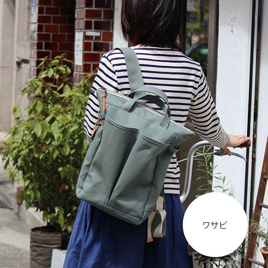 <即納商品> hike35 :ワサビ(高島帆布A4サイズリュック)