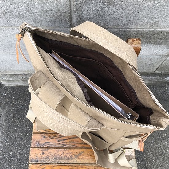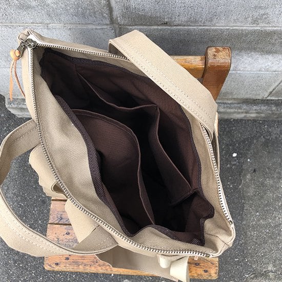 素材は滋賀県高島で織られた帆布。最高クラスの品質の帆布を使用しております。使い込むほどに柔らかく馴染み、愛着のあるバッグになります。