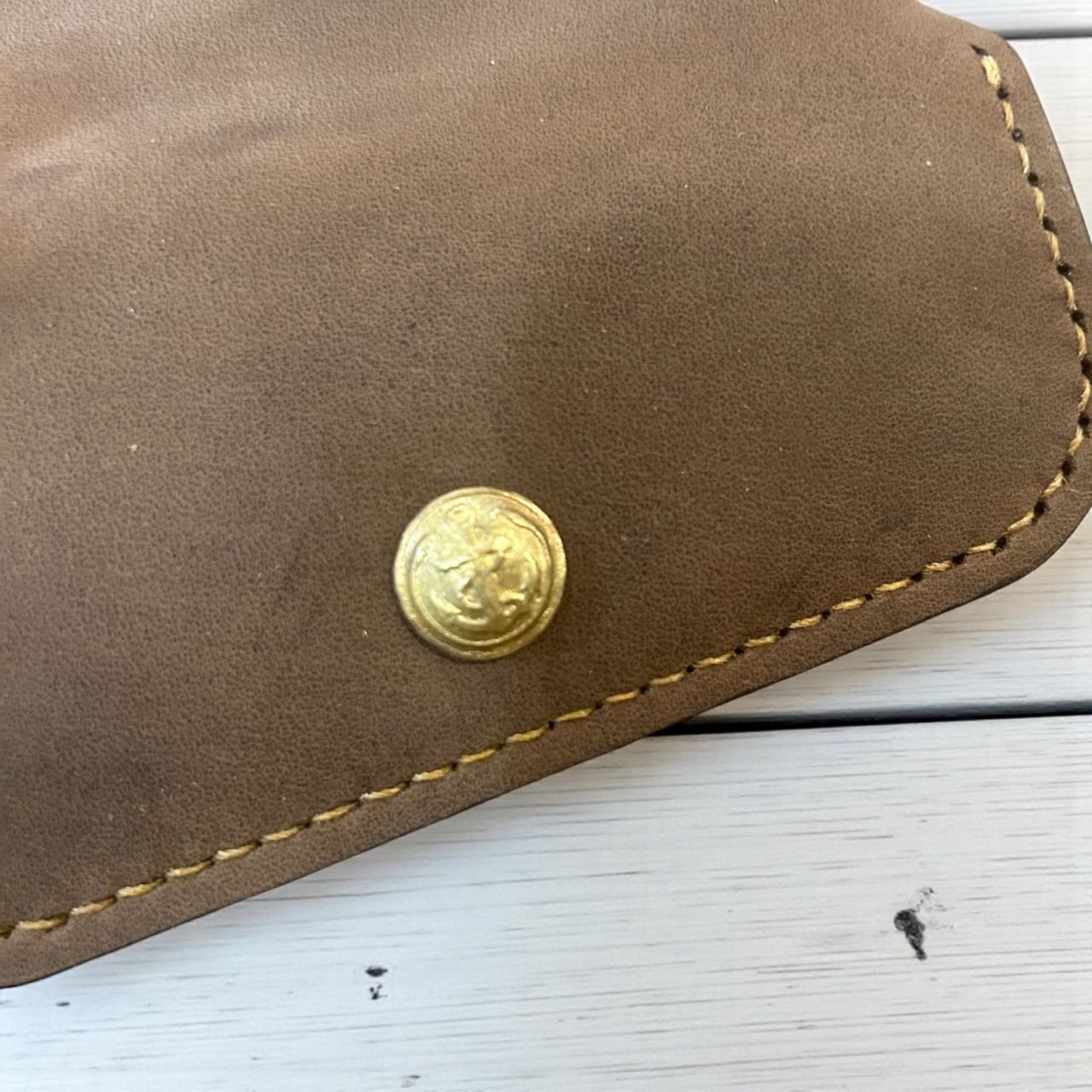 〇イカリ模様の真鍮ボタンが付いています。一点ずつ風合いが異なりますので予めご了承ください。