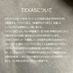 素材は天然素材の風合いを活かした仕上げとなっております。革本来のキズや色ムラ、トラ(革の縞模様)などがございます。またモミ加工を施しておりますので、シワの入りかたにも個体差がございます。天然素材特有の個体差もお楽しみください。