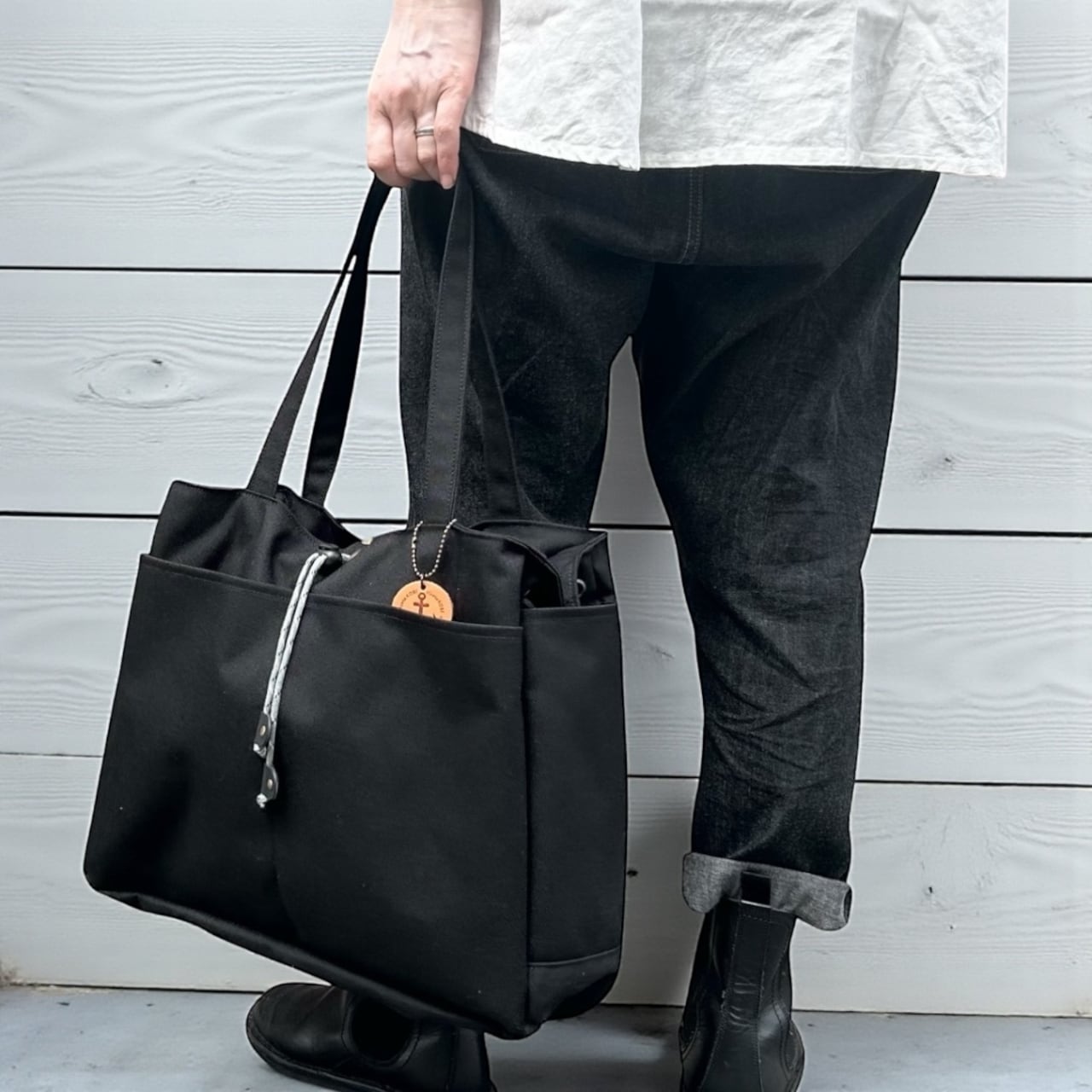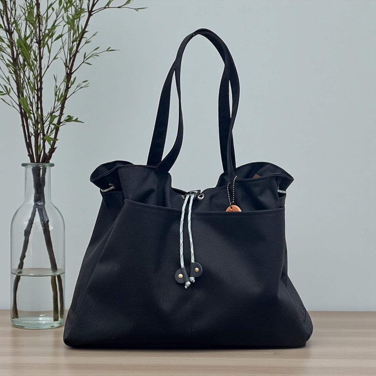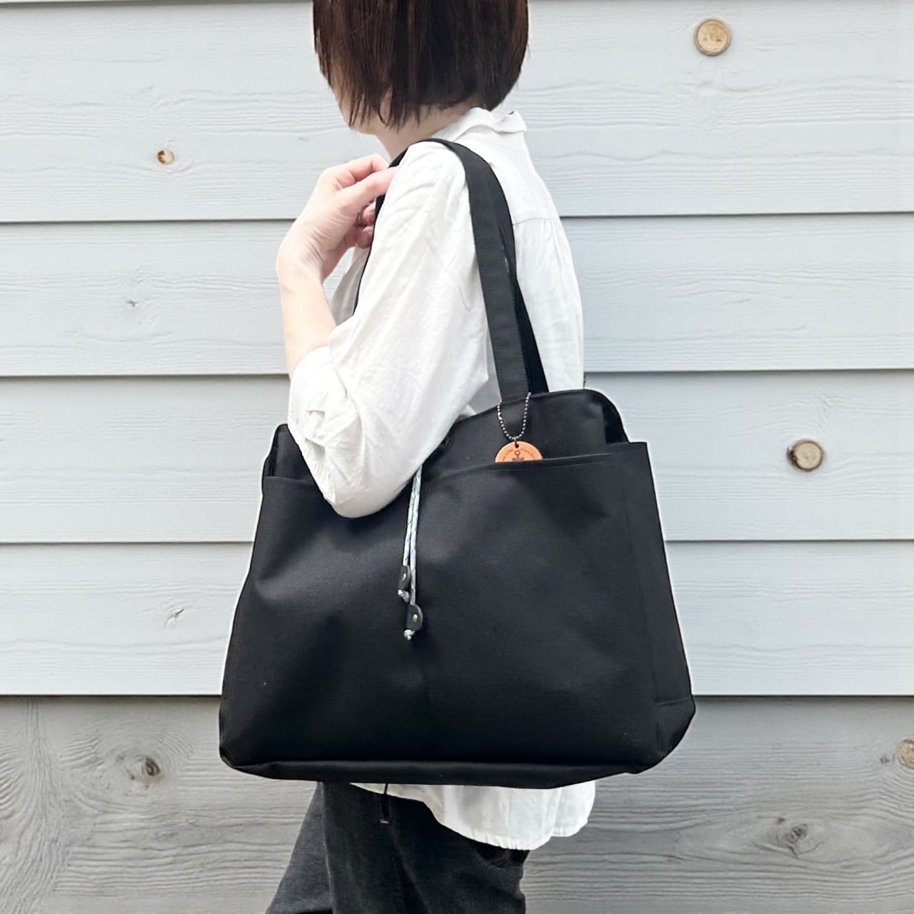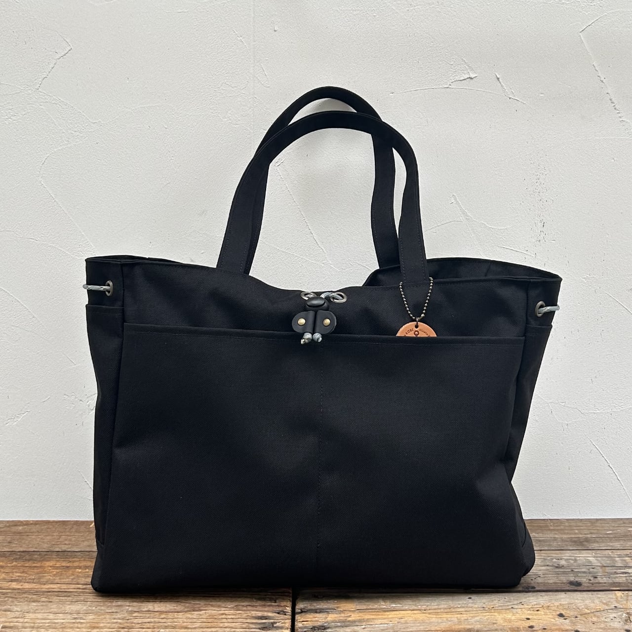 わがままトート:ブラック(コーデュラナイロン 撥水加工ナイロン素材トートバッグ)<受注製作>