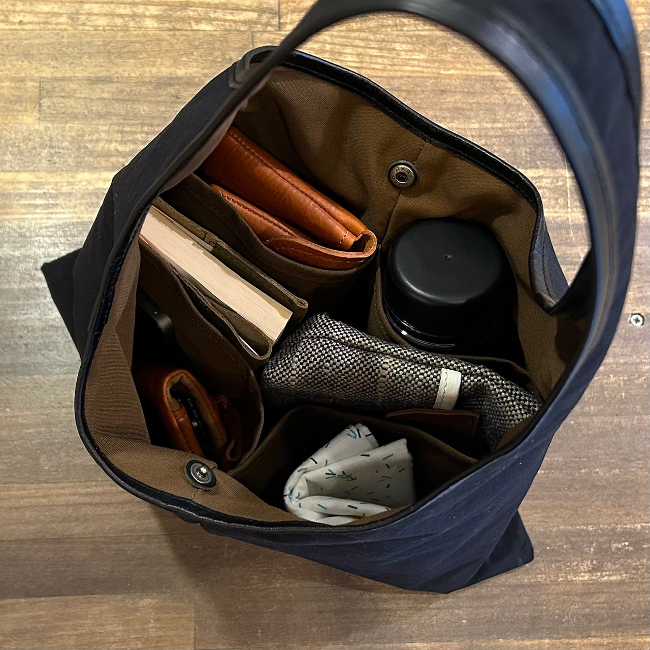 〇画像のバッグの中身は500mlの水筒、長財布、ポーチ、文庫本、キーケース、ハンカチ、スマートフォンを入れてみました。