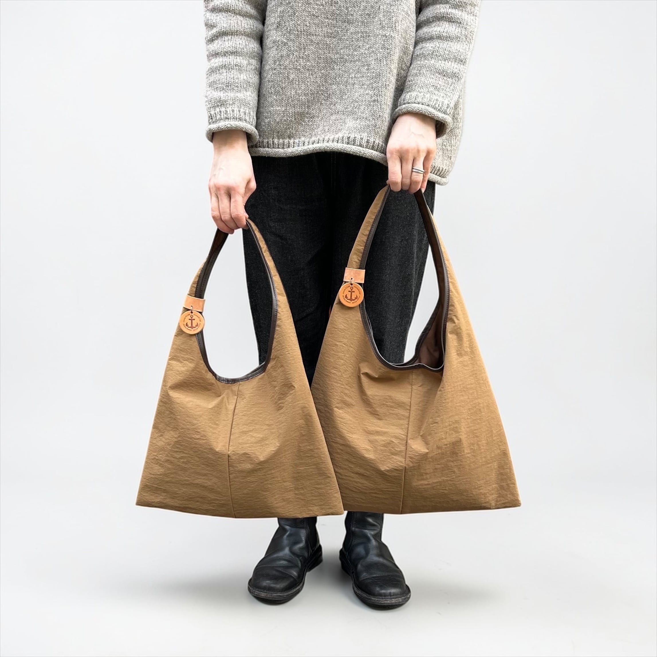 特殊な織りかたにより、昆布のような「ナチュラルでドライな風合い」で、ナイロンなのに温かみのある手触りが表現されています。パリッとした質感ですが、荷物を入れると柔らかな風合いになります。