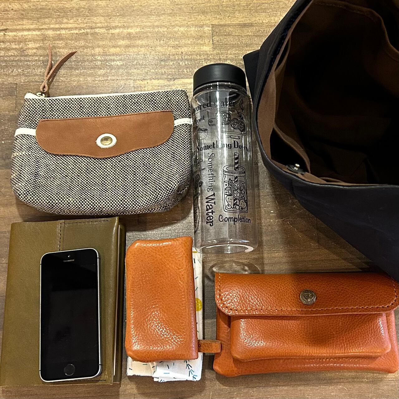 〇画像のバッグの中身は500mlの水筒、長財布、ポーチ、文庫本、キーケース、ハンカチ、スマートフォンを入れてみました。