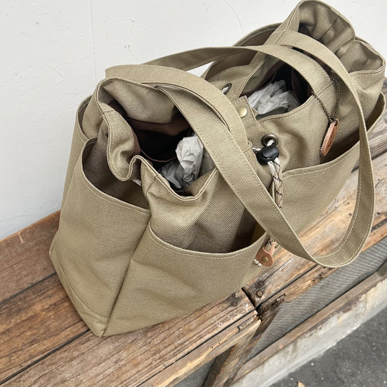 撥水性と耐久性に優れたCORDURA®ナイロンを使用した「わがままトート」。