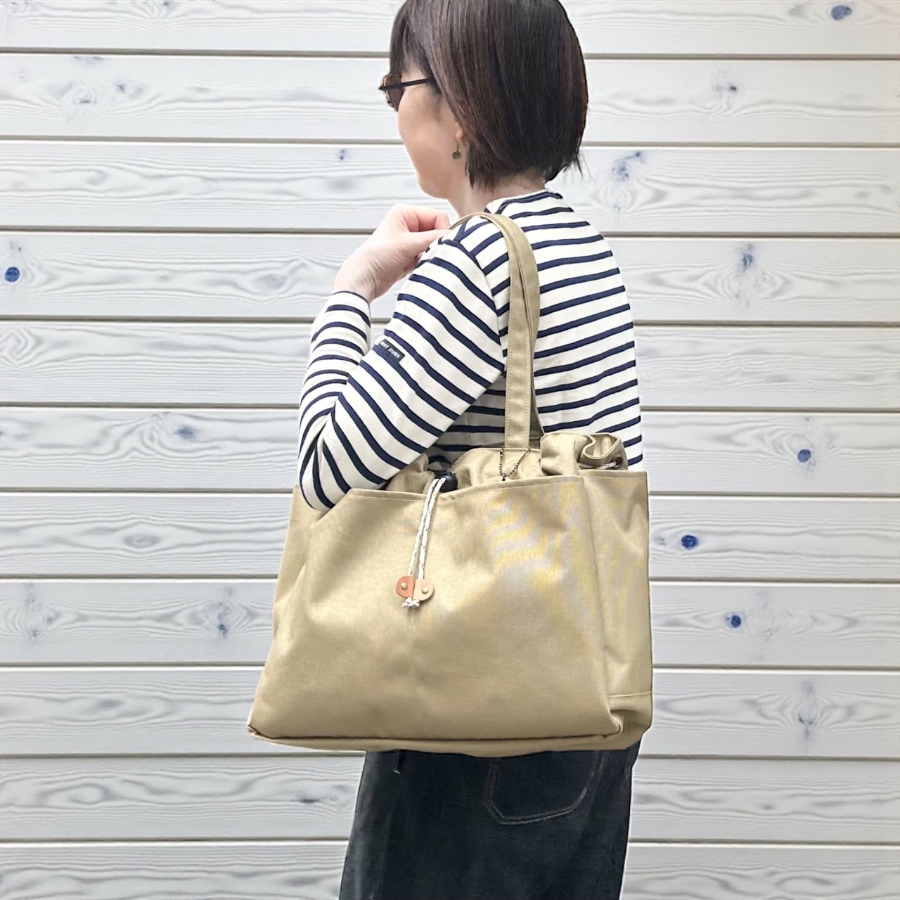即納商品 わがままトート:ベージュ(コーデュラナイロン 撥水加工ナイロン素材トートバッグ)