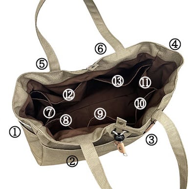細かく仕分けできて、サッと取り出したい!を叶える大小13個のポケット。