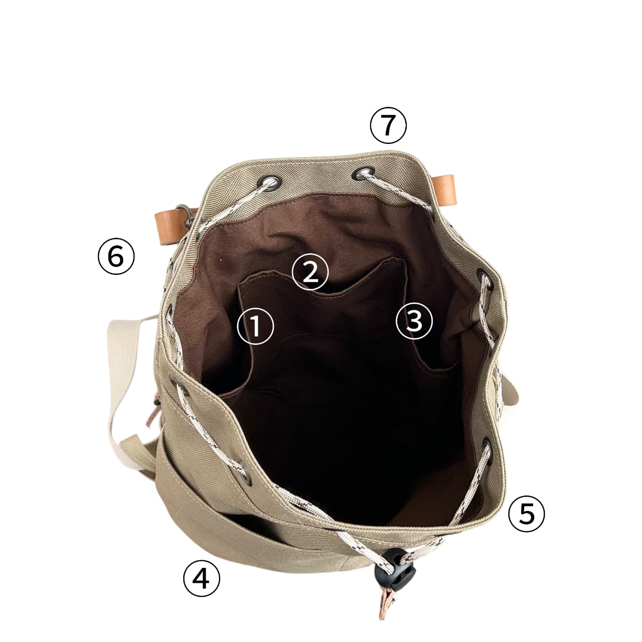 コンパクトで外ポケットの多い、巾着リュック。