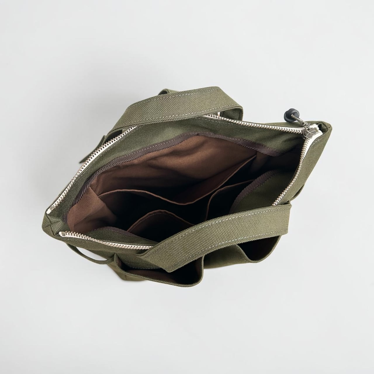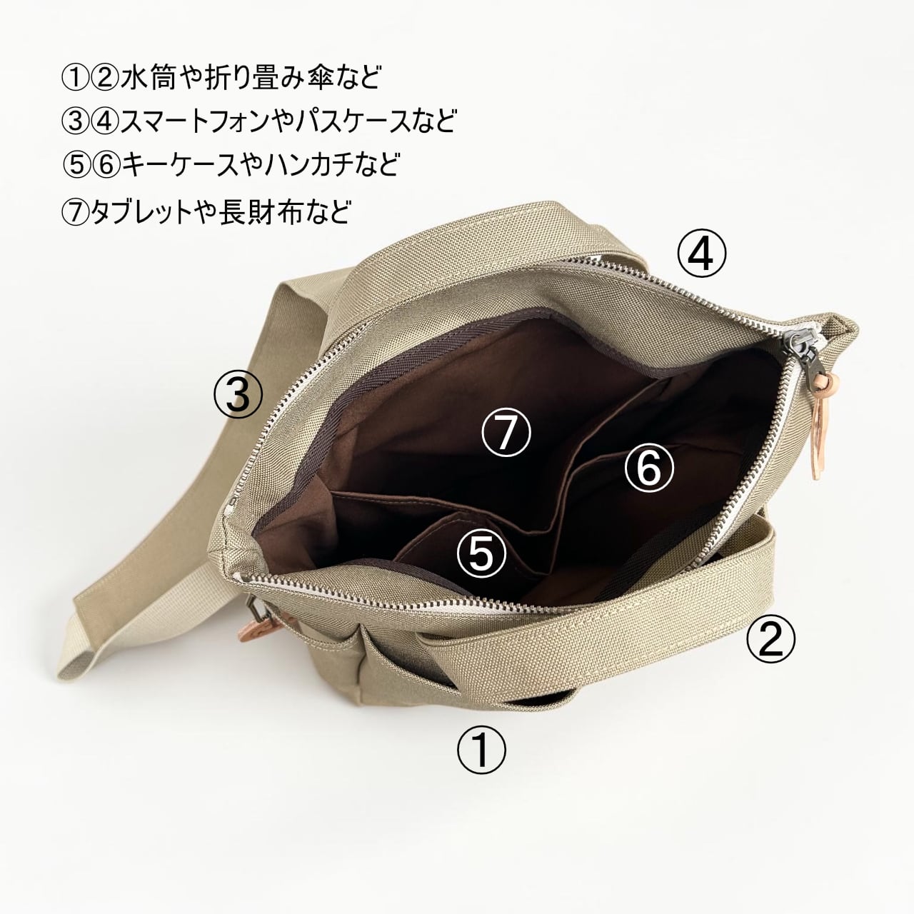 〇中には底まである深いポケットと小さなポケット2つ。たくさん入れても仕分けができます。